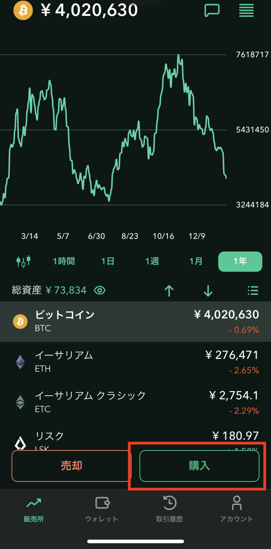 スマホアプリ仮想通貨(暗号資産)の購入手順4