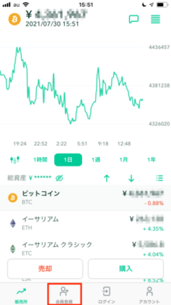スマホアプリ仮想通貨(暗号資産)の購入手順1