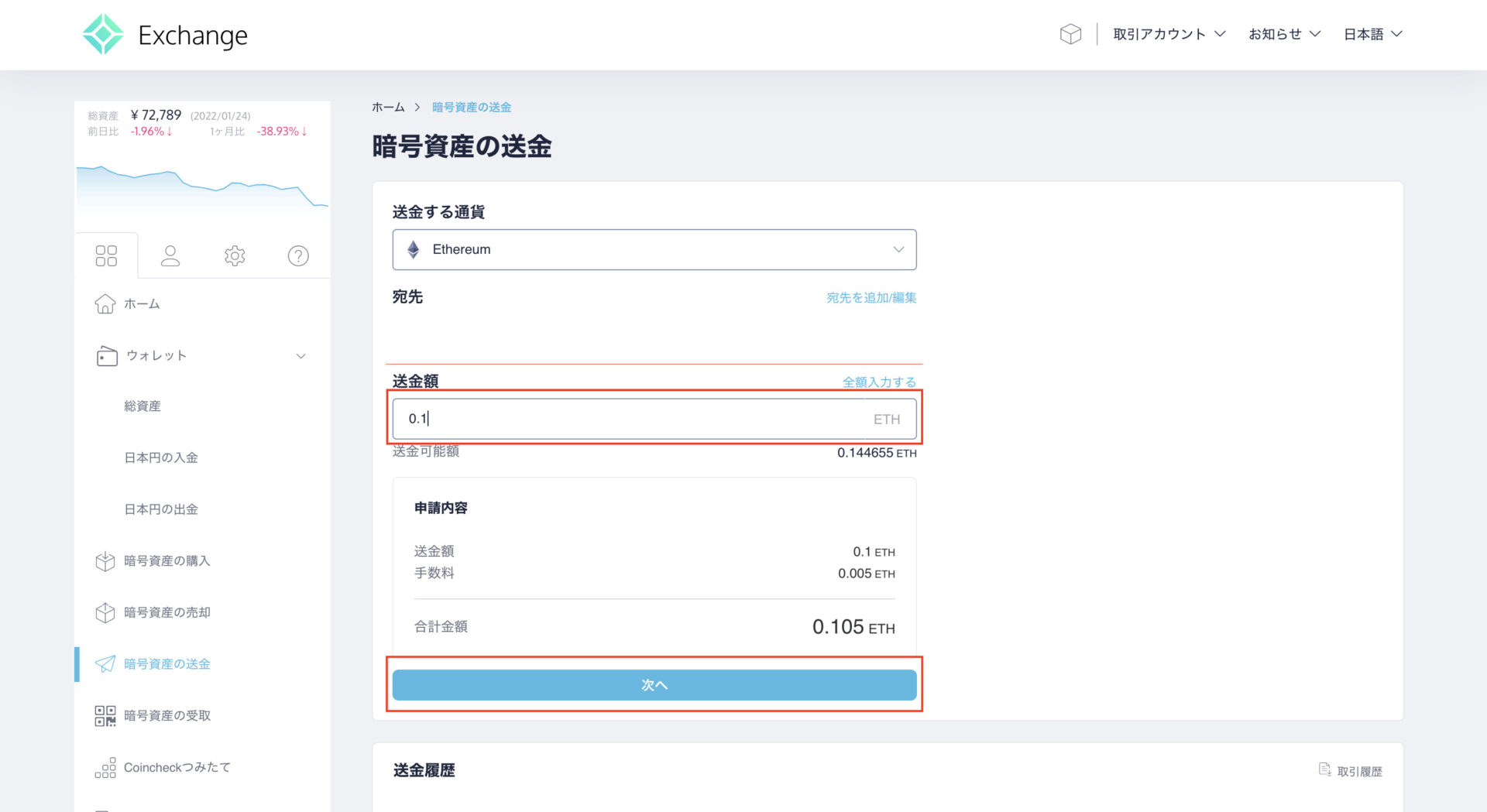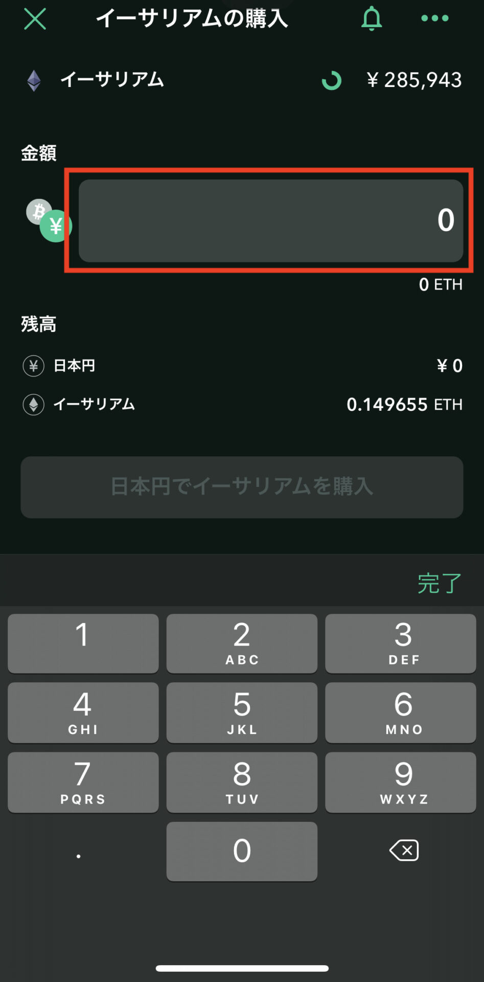 • ETH(イーサ)を購入