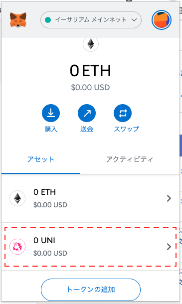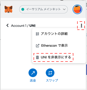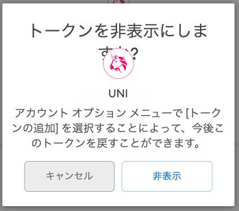 現在のMetaMaskでは、アカウントからトークンを削除する方法はありません。